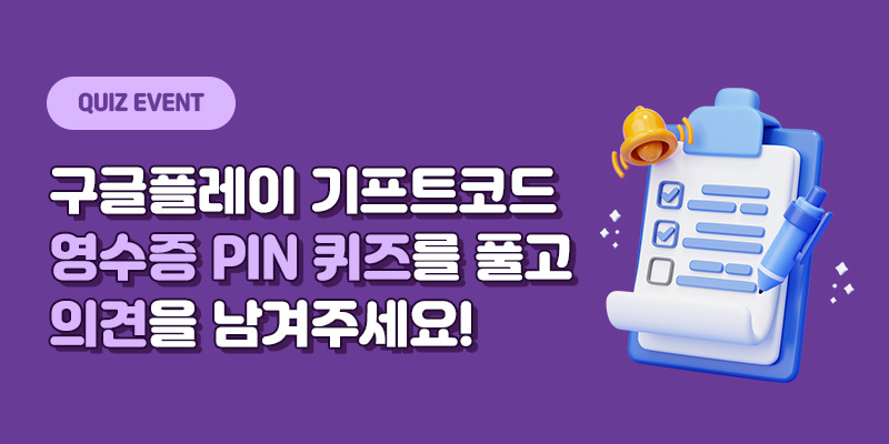 구글플레이 기프트코드 영수증 PIN 퀴즈 이벤트