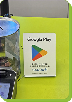 Google Play 영수증PIN상품은 실물 카드 없이 기프트 코드가영수증에인쇄되어 판매되는 1만원권 코드 상품입니다. 미니 집기 뒷면 바코드를 스캔하면, 코드가 영수증에 프린트 되며 일반 기프트 카드 PIN과 동일하게 사용가능한 상품입니다. 1만원권 상품을 재고걱정없이 항상 판매할 수 있으며 작은 집기 형태로 공간을효율적으로활용할 수 있습니다.